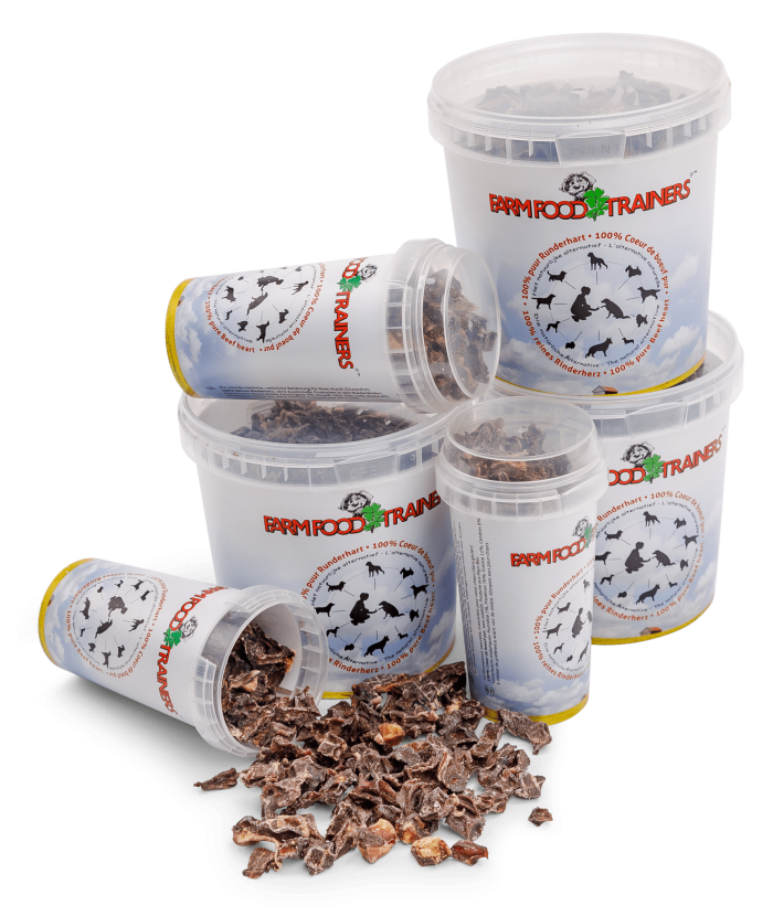 „Farm Food Trainers“ skanėstai yra maži, kieti, labai skanūs džiovintos jaučio širdies gabalėliai. Keletą gabalėlių galite paprasčiausiai nešiotis maišelyje švarko ar kelnių kišenėje nesibaimindami, kad skanėstas sutrupės ar taps lipnus. Dresavimui ar kasdieniams pasivaikščiojimams mes siūlome gudrybę – patogią „Farm Food“ juosmens rankinę, kurioje lengvai telpa nedidelė skardinė su „Trainers“ skanėstais!